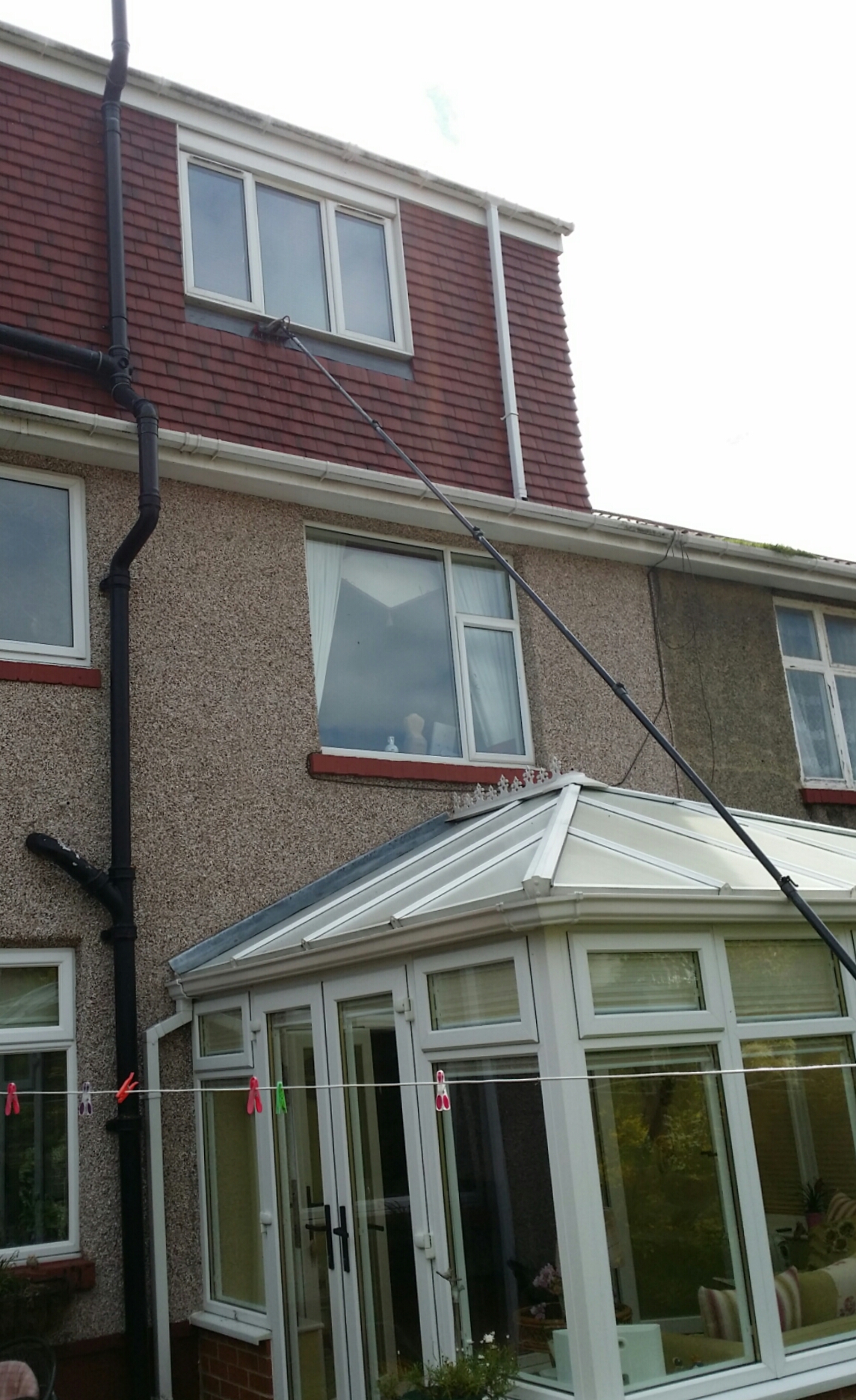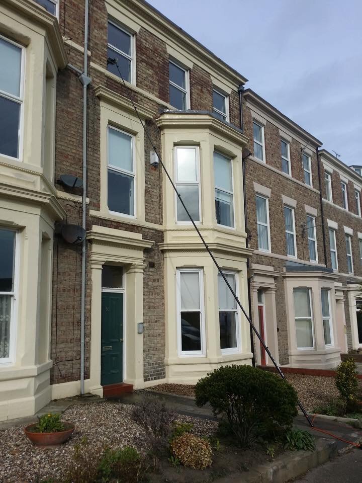 There are so many benefits of using the reach and wash system. These include: - Cleaned upvc frames, doors and sills - No more damage to roofs, slates, tiles, flat roofs and gutters. - Previously non accessible windows can be cleaned with ease - above conservatories. - Your privacy is vastly improved as all work is carried out from the ground floor. - reduced noise pollution - no banging ladders on sills and gutters.